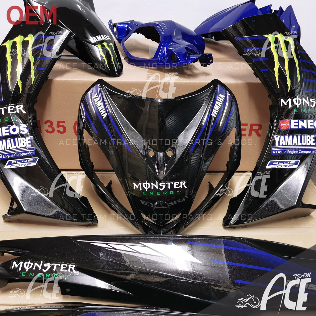 Coverset Lc135 V1 Monster Ltd 2019 Yamaha Lc V1 Body Cover Set Monster Energy Lcv1 Edition Black Blue Oem Shopee Malaysia