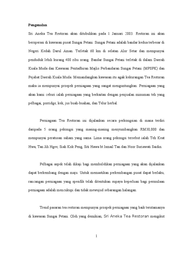Contoh Rancangan Perniagaan Restoran Pdf